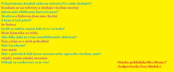 Jen tak jsem se jí ptala :)) v minulých rozhovorech mi dovolila toto dát na svůj blog ;pTak tady to je...!